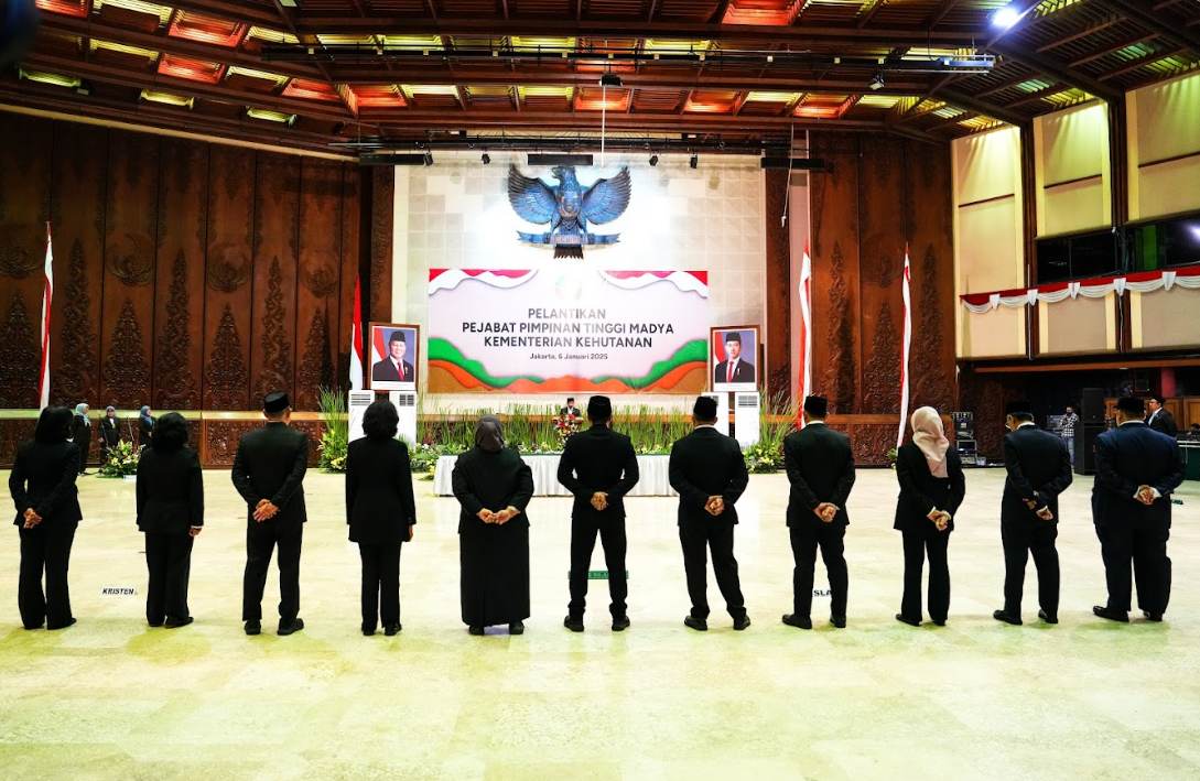 Menteri Kehutanan Raja Juli Antoni melantik 11 (sebelas) pejabat pimpinan tinggi madya untuk struktur baru Kementerian K...